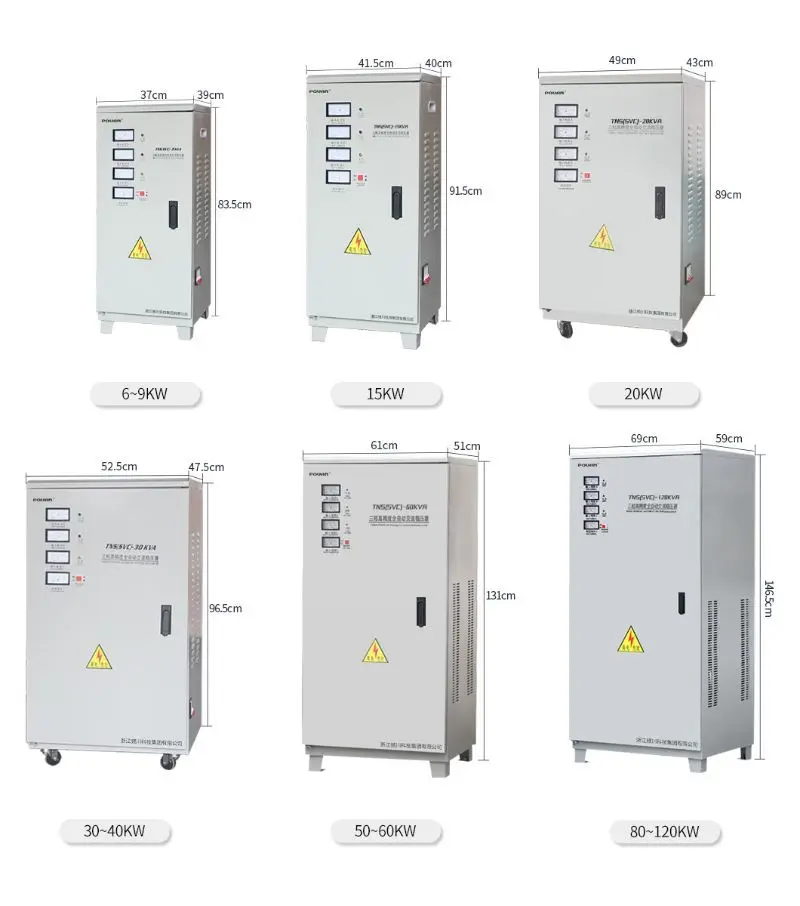 Regulador automático de voltaje de 380 V, 15/20/40/50/60/80/100 kVA, estabilizador trifásico TNS/SVC, regulador industrial de voltaje