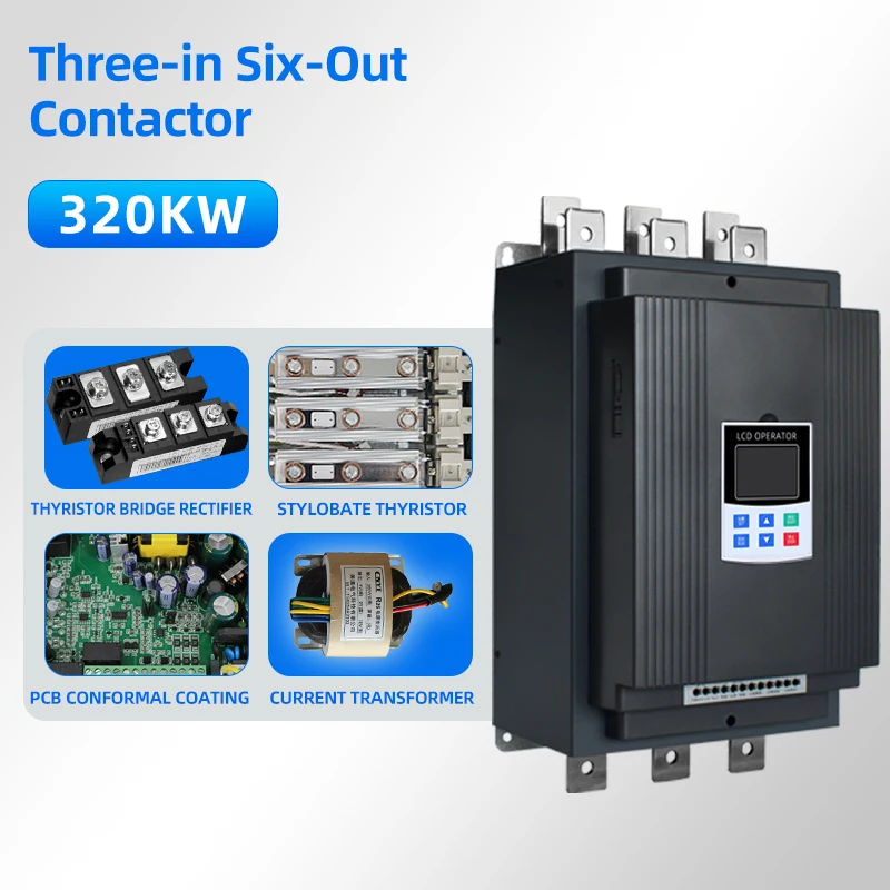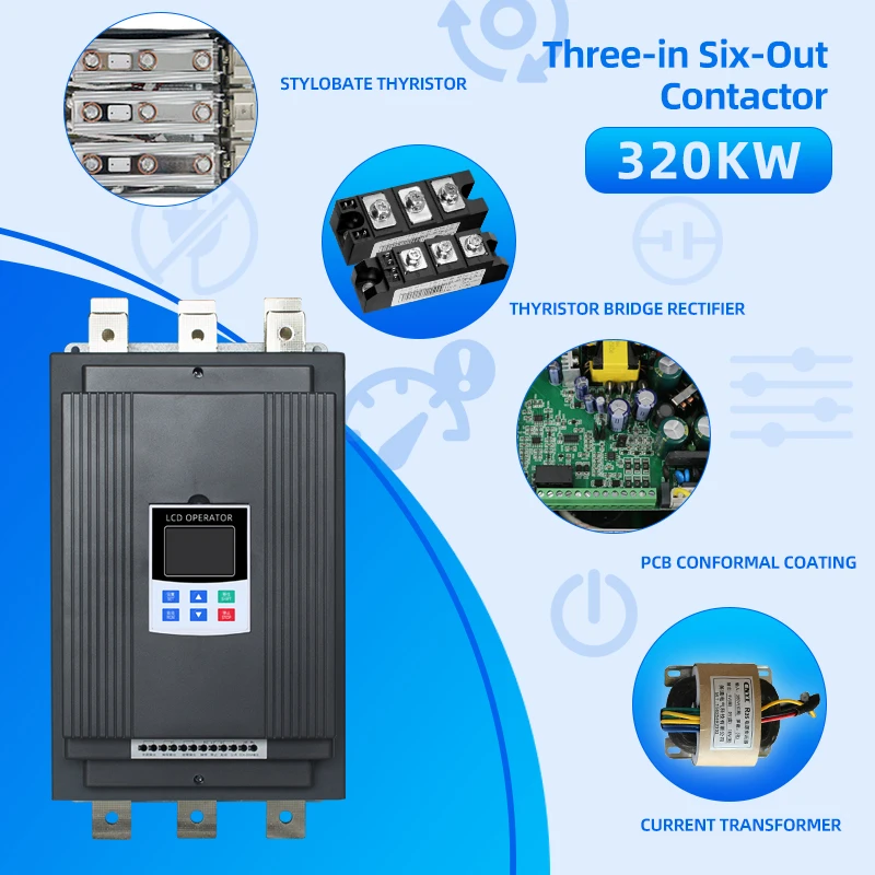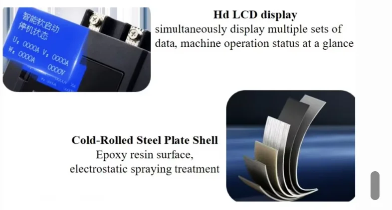 • Versatile Starting Modes: Current limiting start,Voltage ramp start,Kick start + current-limiting start, Kick start + voltage ramp start, Current ramp start, Voltage current-limiting double closed-loop start